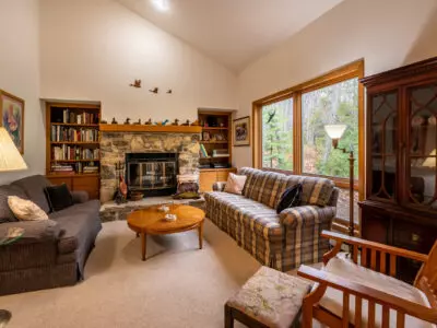 This is a beautiful home, all season, with gorgeous views of the glistening waters of Eagle Harbor and Ephraim. The living room boasts original oak flooring, a stone fireplace, sofa, loveseat and white painted bookshelves.…